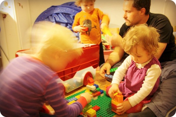 Vissa kvällar är man mer glad än andra när ungarna sover sött i sina sängar. Det går från noll till hundra på några sekunder med det här gänget. Den aktivitet som kan vara rofyllt blir plötsligt kaotisk eller så stormar alla tre ungar in med kläderna på innan man ens hunnit säga hej i ytterdörren. Jag skulle vilja kunna ha ett pussel eller ett memoryspel med alla bitar samlade på ett ställe. Jag skulle vilja kunna ha smålego i nåt rum, bara lego i nån låda. Jag skulle vilja kunna ha kläder och speciellt klädskåpen ifred, utan att någon drar i dörrarna heeela tiden. Men nu är det inte så, inte än.