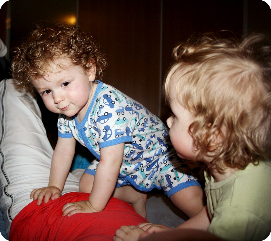 Och ibland vänder det till raka motsatsen. På en sekund ungefär. Ikväll fick tvillingarna för sig att det var väldigt roligt att busa i sängen innan läggdags. Hur kan man ändå vara sådär liten och söt? Och hur man kan ha så lockigt hår? (ibland på nätterna, tar jag Isaac eller Milja intill mig och vill bara gosa och pussa, ”paja” dem tills de puttar bort mig. Milja puttar inte bort mig lika snabbt, men i nåt skede måste man ju ändå vända sig om för att sova. Lilla liven, det är nåt av de finaste stunderna som finns).