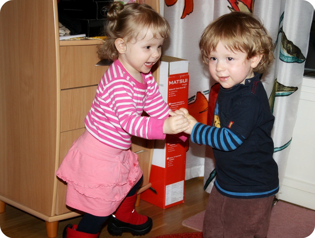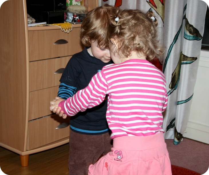 Gissa om det var bedårande att se när Milja tog sin tvillingbror i handen och dansade till musik från radion. Det känns som in nån film, det där korta ögonblicket, det ljuva ögonblicket! Mina små hjärtan! Det är fammo som har sjungit och dansat ”Piiri pieni pyörii” med dem och nu har jag haft den låten som öronmask (säger man det på svenska också?) i ett par dar. Fast det är en trevlig låt att ha i huvudet ändå.