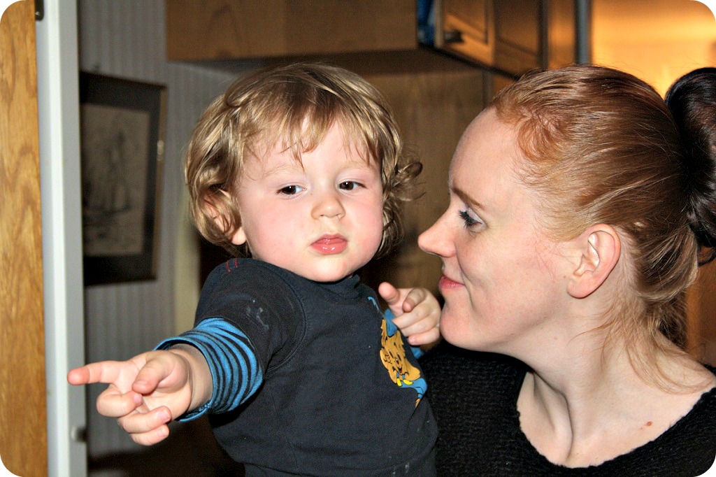 Men så fick vi komma till Eine-mummi på advensmiddag och som vanligt hade h0n dukat upp för ett helt kompani. Isaac och Milja åt och åt, till och med långt efter måltiden (precis som på jul, som det ska vara, konstaterade vi) och slängde in lax, broilerbullar, ärtor, potatis, glass och kex. Det var roligt med miljöombyte och att träffa en delar av den stora familjen som ofta var vardag för folk förr i världen. Sånt är värdefullt, även om det är både bökigt och svettigt att dra iväg med tre barn och en grinig mamma. Men det är värt det!