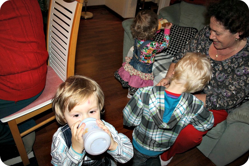 Dagar då kameran fylls av liv och flest bilder, är då det är fullt hus. Idag var vi 16 vuxna och 9 barn under samma tak. Och det var lite magiskt, för vid ett tillfälle satt alla barn (utom tvåav mina, som åt lite senare) och åt fint i en samlad tropp. Och de samsades nästan hela tiden. Att man skulle bli lite halvdöv om det var sådär varje dag, är en annan sak, men fammo hade ordnat det så fint. Jag hade bara bakat lite cheesecake, som också uppskattades och tog slut. Det blev en lyckad fest-mellan-fester och en stor samling av släkten, som annars inte träffas så hemskt ofta.