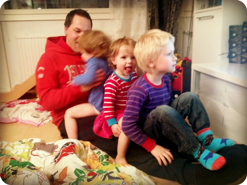 Och ibland är det väldigt långt till kvällen, även om vi fick en sovmorgon i morse. Fast sen när de sover, känns det faktiskt rätt bra igen. Mitt i städtagen, kröp jag omkring på alla fyra och torkade vällingfläckar på vårt golv idag. Jag försöker skapa mig ett annorlunda förhållande till vårt parkettgolv. Jag försöker tänka att de där groparna, ränderna och ojämnheterna är märken efter liv, efter kärlek och efter en familj som ständigt är i farten (och jag vet att åtminstone hundägare förstår mig!) Det vore fint med ett slätt och klanderfritt golv, men kanske det vore lite mer tråkigt.
