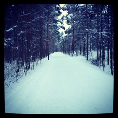 Äntligen har förkylningen gett med sig såpass mycket att jag vågar springa igen. Jag var på väg till min sedvanliga bana i skogen, tills jag kom på att det är skidspår där nu! Ouch, snö och is och minus sju. Det var ett tag sedan jag sprang senast.