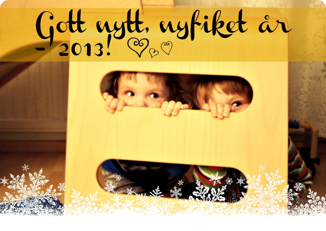 gottnyttnyfiketar… och till slut, innan det nya året börjar, vill vi önskar er ett SUPERGOTT nyår med många nya äventyr! För vår del innebär det att twinsen ska få ett rum nästa år, att jag ska på praktik med skolan (redan i mars! Spännande!) och att jag ska börja med löpskolan i januari. Mika ska springa maran i Stockholm i juni och vi hoppas på ett mycket varmare år i år! Tjolahopp! Tack alla ni som följer våra vardagsglimtar. Det är små för mänskligheten, men stora steg för den lilla människan – och för oss. Mera lycka, mindre öl, varm sommar och mycket kramar – gott nytt år!