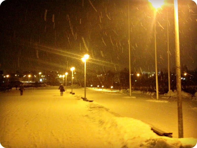 När jag kom ut från kvällens föreläsning hade det börjat snöa. Stora, fluffiga flingor som blåste av bilen när man körde iväg. Härligt! Kom tillbaka, fina snö! Det är mycket vinter kvar, men det är en ljusare och finare vinter! Och Mika hade bakat bröd, gott!