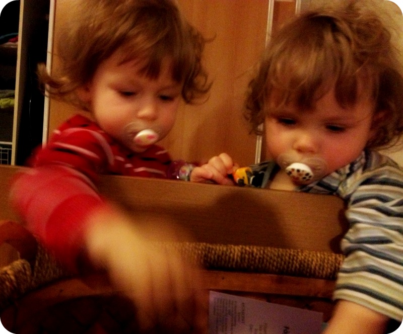 Twinsen och William var rätt glada idag. Fast de hade trötta föräldrar. Lycka är att få lov att hoppa i fammos och faffas säng och leka med bilar och garage precis som man vill på en hel övervåning!