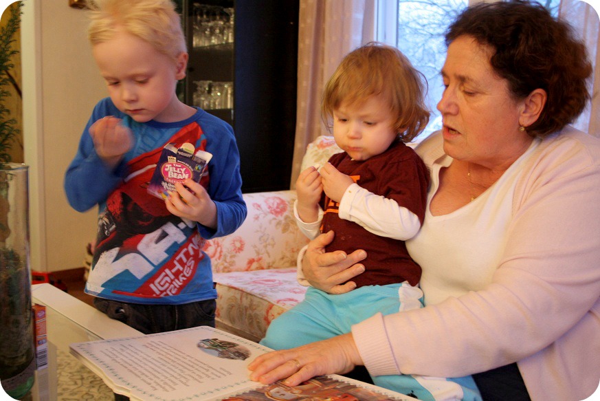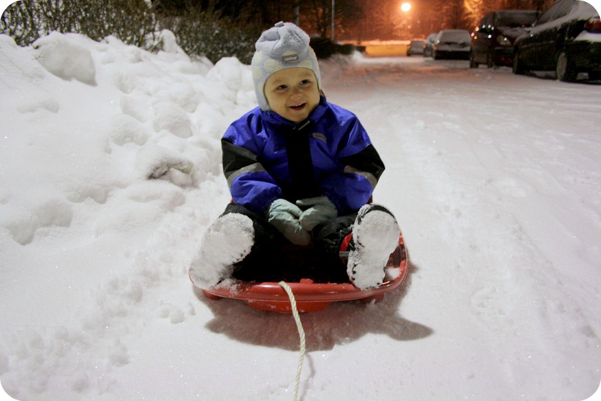 Det har snöat massor idag igen och jag sladdade till dagis för att hämta tre glada ungar. ”Godis!” var det första tvillingarna sa. Hur kan de ha kommit ihåg det jag berättade i morse? 😀
