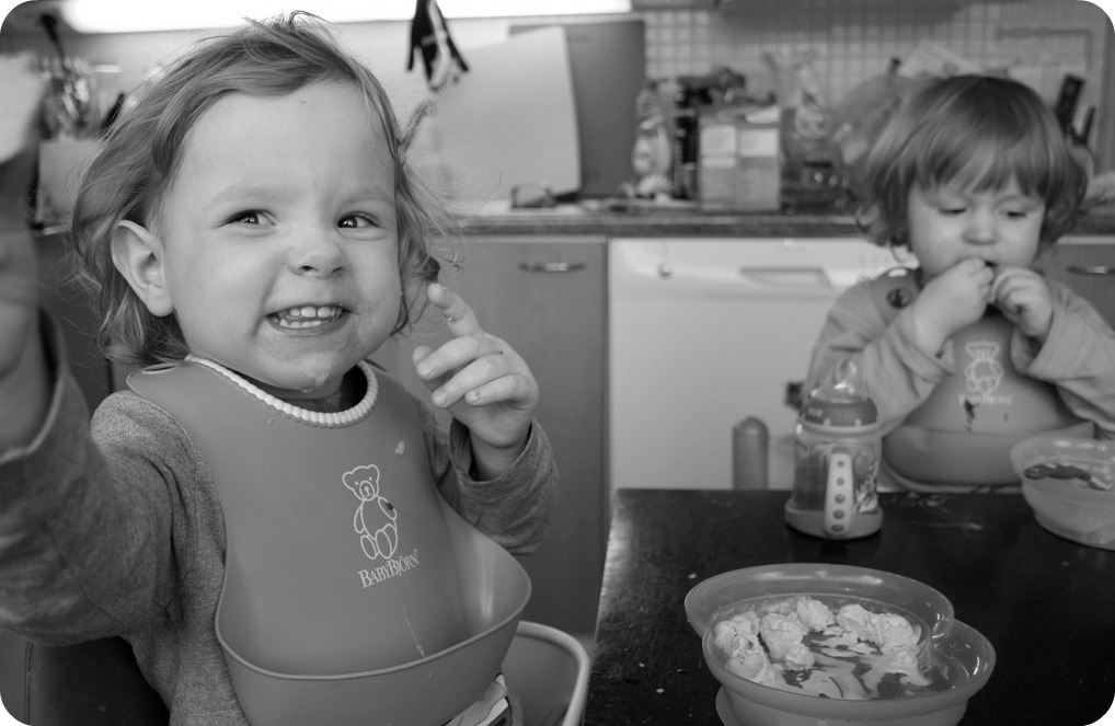 Milja tycker om att sitta och peta en på armen när hon äter. Men jag är inte särskilt förtjust över att hon vill ”måla” med maten. Idag sa jag ”nej, du får inte” och då vände hon genast ner munnen! Hon satt bara där och skakade smått på huvudet, med vääärldens ledsnaste min. Lilla tösabiten. Jag kramade henne och hon var liksom på vippen att börja gråta, darret på läppen fanns där och sen kom tårarna. För det är sååå orättvist när man inte får smeta ner sin mor med mat! Jag försökte att inte fnissa för mycket, för såna där gånger ser hon bara så hemskt envis och sötsur ut.