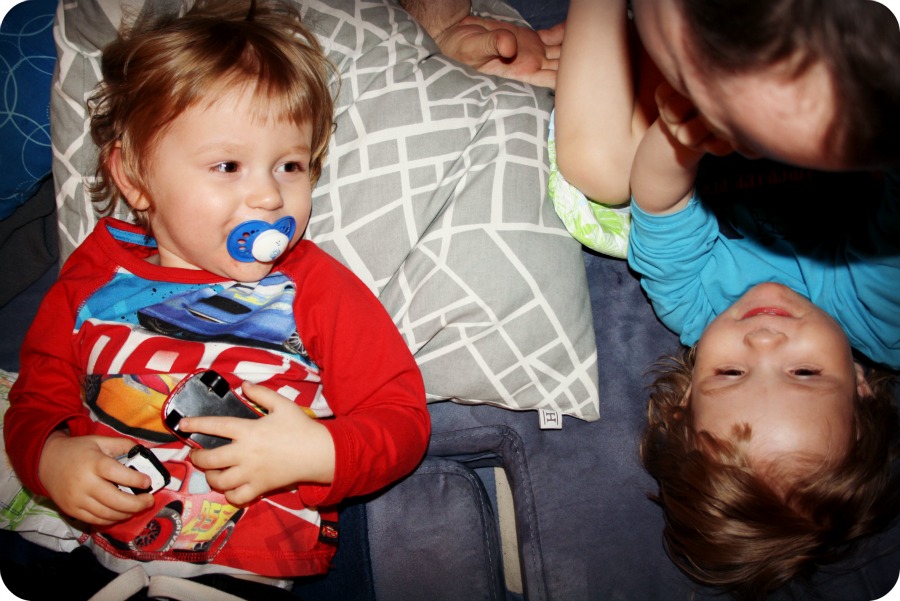 Trots en del feber och avkortade nätter, har det varit mycket skratt och skoj. Jag fick sova med twinsen idag på dagen och kände mig pånyttfödd! Herregud vilket sömnbehov jag har, det är skrämmande. Det kommer alldeles säkert att funka med jobb i framtiden, men nog är det en omställning med råge. Tur att jag har barn som åtminstone delvis gillar att slappa på soffan med mig!