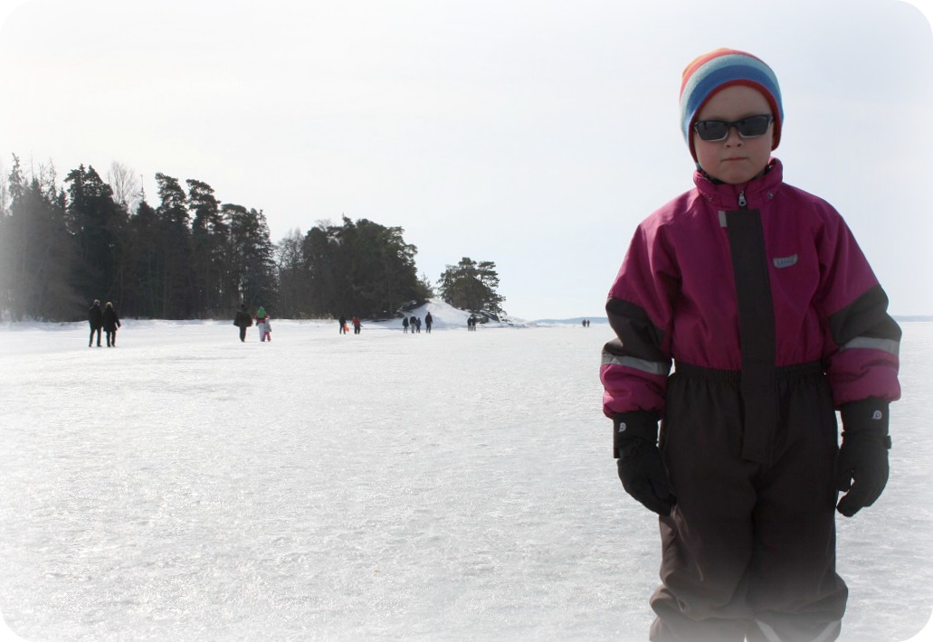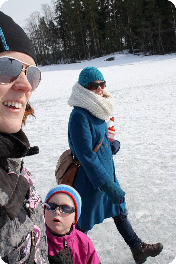 Jag hade ingen aning om att det var såhär mycket is kvar i Runsala. Det var ju hur skönt som helst på isen! Egentligen gick vi bara hit för att lufta oss lite och se om det hade smält nåt. Folk drog på vedklabbar, pulkor och busiga barn, medan andra hade satt sig och grilla i solskenet. Min barndomsvän Annika är på besök och vi njöt av en tur på isen. Vi konstaterade att vi känt varandra sedan vi var yngre än William är nu, även om vi gått om varandra och bott i samma och olika länder. Och hej till dig Anne, trevligt att du kom och ryckte mig i ärmen! 😀