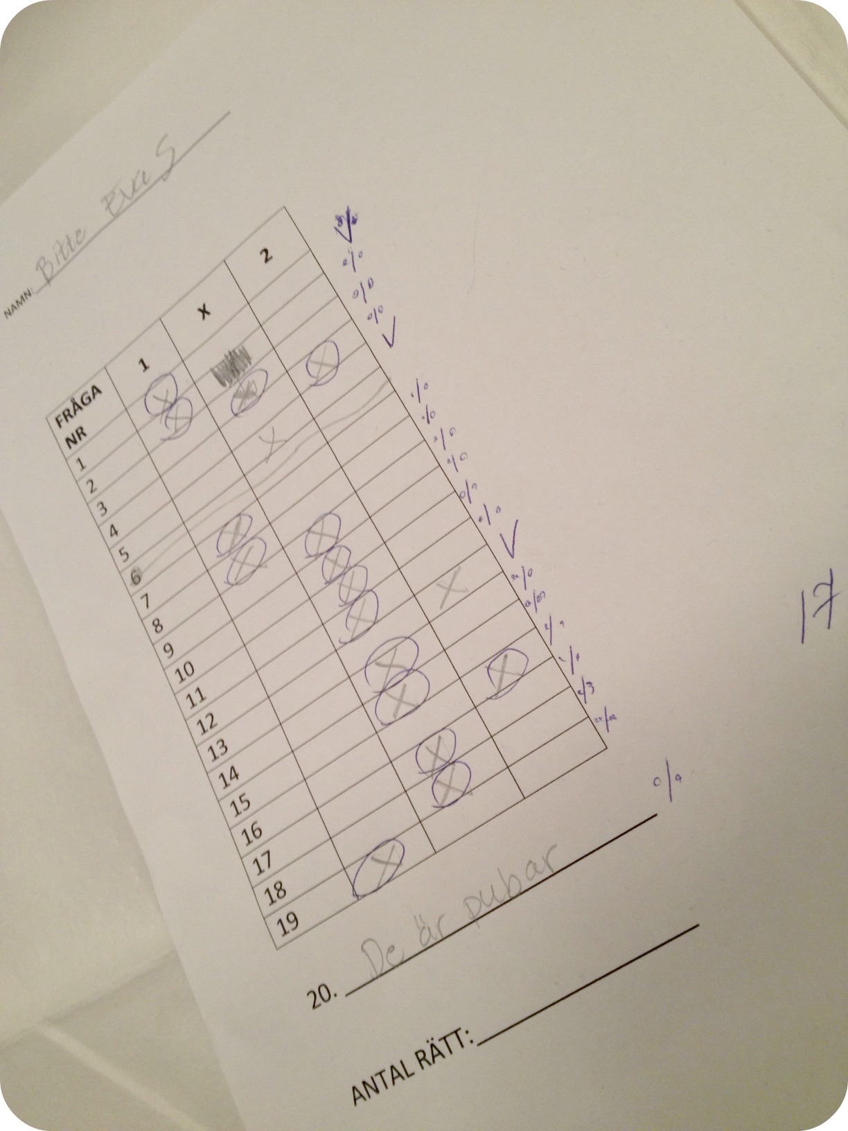 Ett av programnumren var en tipsrunda, där man bland annat skulle veta hur Pelle Svanslös blev av med sin svans, var Carl von Linnés universitet ligger och hur långt det är mellan Åbo och Uppsala i kilometer. Jag och Eva, från Munviga vann, jee! Vår vinst var godis och ungarna var glada ikväll, för jag tog hem det som blev över (en hel del!)
