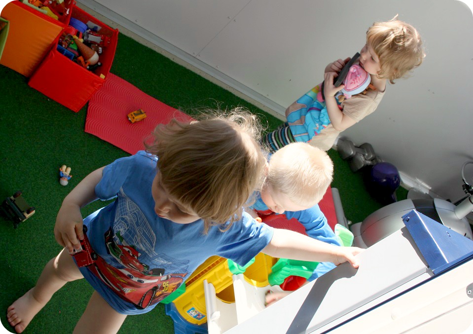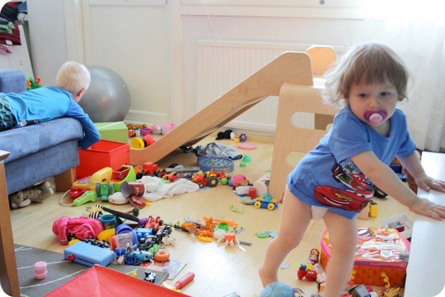 Idag skiner solen, vi har så varmt på balkongen att jag måste öppna ett av glasen. Ungarna är vilda och Isaac välter ut låda på låda med leksaker. ”Isaac ha lilla lådan, bara lilla!” sa han och drog iväg med ännu en låda till balkongen. Ibland får man sån lust att ta fram dammsugaren och bara SSSCCHHLurp! 😀 Varifrån kommer alla småpryttlar? Vi har i alla fall inte behövt köpa leksaker till twinsen, det mesta är ärvt eller sånt de fått i julklapp eller födelsedagspresent. Eller småkrafs från McD’s (ni vet, vi äter ju alltid så jättenyttigt).