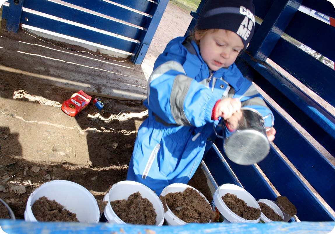 Äntligen uteväder, på riktigt! Alla vänners FB-statusar är fulla av glada miner, påminnelser om solens glädje och blommor och utfärder. Vi har inlett parksäsongen igen, släpat ut sommarens hinkar och attiraljer. Isaac ville som vanligt hälla ut alla saker! (han vaknade förresten 06.40 i morse. Ingen var glad, inte ens han själv. Nog är det ju som själva attsingen att han annars sover till långt över sju eller halv åtta – utom på helgerna! Fem minuter senare stod han och grät vid sängen för att han inte genast fick saft eller ostmacka. Eller för att han trodde att det fanns en Finn McMissil-bil under tv-bordet.)