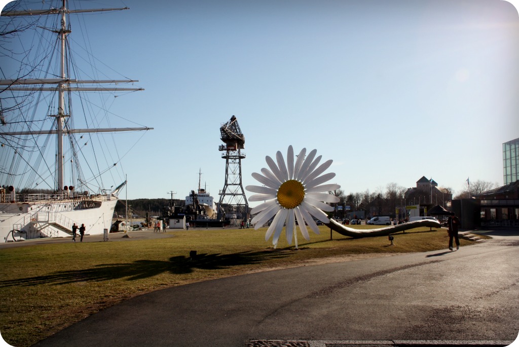 Solen utanför Forum Marinum och Suomen Joutsen. Mål- och starten kan man ana lite lite, till höger på bilden.