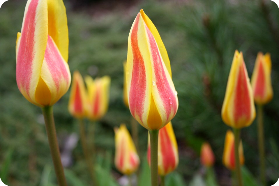 Tulpanerna liksom strålade av färg i den annars grågröna naturen. Snart slår de ut!
