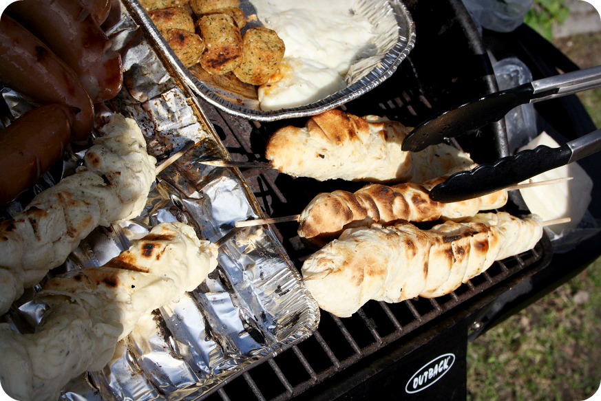 Hello grillsäsong och välkommen åter! De där pizzabröden blev ju jättebra, det var skoj. De är lite luriga att baka, degen ska jäsa som en vanlig bröddeg och är gjord på jäst, vatten, lite salt&socker och riven ost och basilika. Jag kan skriva ut receptet om ni vill, ni hittar det också i senaste numret av ”Leivotaan”. ^_^ Färskt, varmt bröd är alltid en höjdare!
