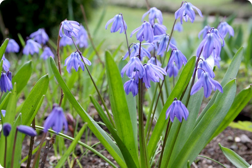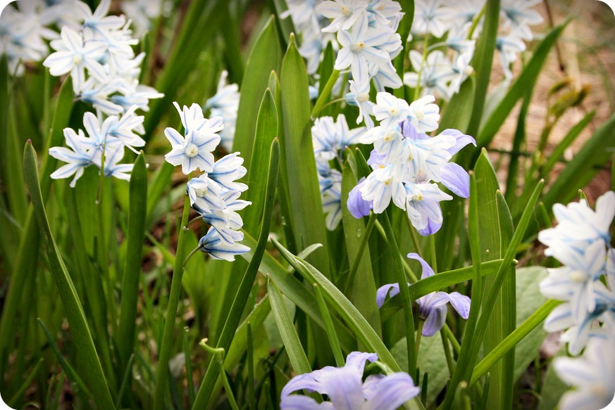 Morgonen var sval och disig. Det låg ett vitt täcke, som lindade in skogar med husen, och daggen låg kvar i vegetationen långt in på förmiddagen. Det grönskar på träden, allt knoppas, rabarbern sticker snart upp och det är skönt, skönt, SKÖNT med vår och försommar!