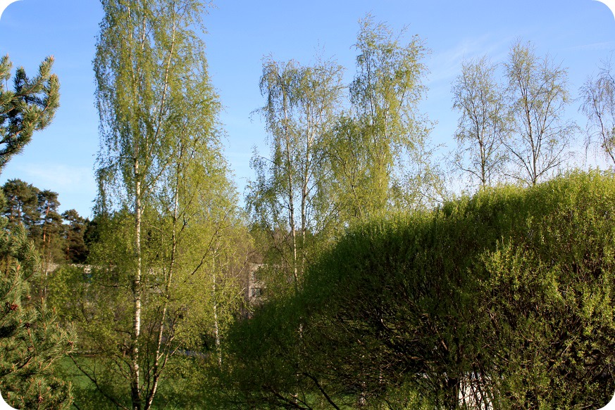 Utanför vårt hus har djungeln växt upp igen och det är vårgrönt, björkgrönt med sena, sköna kvällar. Jag gav mig iväg på en liten löptur i den svala senkvällen (14 grader) men antingen har jag för dålig kondis eller dålig svettfunktion. Det är så varmt och jag blir tomatröd på en gång. Springer i skogen och sa hej till årets första myggor (kul – not!). I en backa joggar jag, eller försöker jag jogga förbi en gubbe som går. Det går så seeegt, jag kommer knappt förbi. Man kan inte spurta i uppförsbackarna, inte jag i alla fall och inte vid Nunneberget, det är så brant. Flås och stånk.