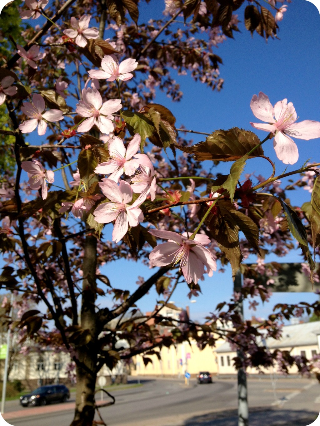 På väg till dagis ser jag att körsbärsträden har slagit ut, underbaaart!
