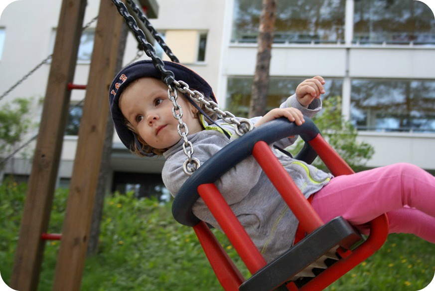 Milja trivs bäst i gungorna eller med att klättra och rutscha.