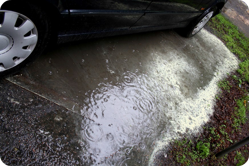 Så kom den där lila regnkappan fram i år igen. Regnet tilltog och det formligen vräkte ner en ganska lång stund.