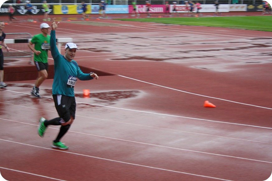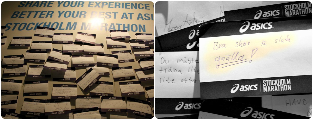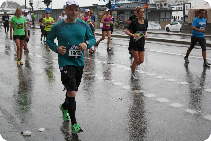 En av dem var Mika! Jee, heja heja! Arrangörerna spelade ”Fly on the wings of love” och poppiga dängor, medan de räknade upp folk som kom i mål. Stockhol maraton är ju ett av de största finländska arrangemangen (fniss) också, så en hel del prat gick även på finska.