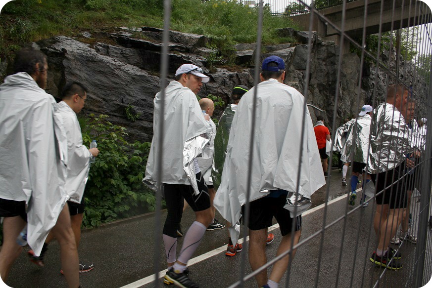 Ifjol var det sopsäckar som var hårdvaluta – det här året fick alla som kommit till mål en värme-prasselfilt i plast. Vad kallas dom? De funkade bra i alla fall.