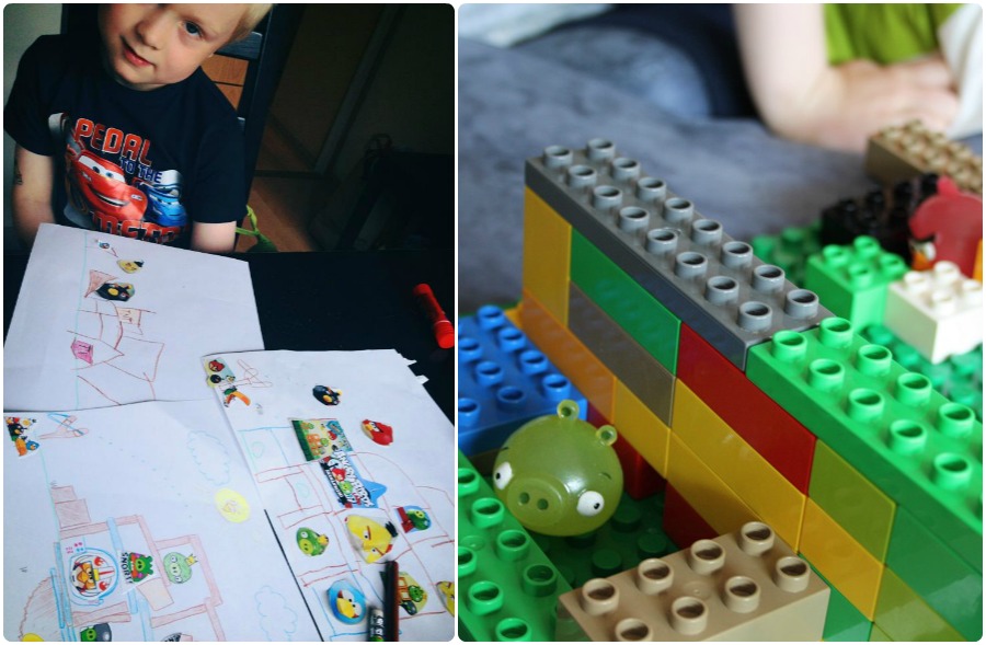 Idag satt vi och pysslade länge, klippte ut Angry Birds-figurer och ritade samt tog sedan en runda till stan och köpte kallingar till twinsen. Vi har börjat potträning (utan blöja på dagen) på allvar. Det var dagis som föreslog det och vi hade tänkt samma sak, när det är sommar och allt. Och nu köpte vi småbyxor för 36 euro – nu får de verkligen ta och lära sig!