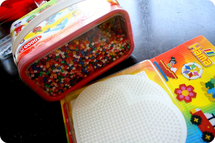 Jag kommer säkert att ångra det här smipillet. Vi köpte 10.000 pärlor i en hink. Tänkte att det blir ett bra pyssel och att vi kan fortsätta på det här arga fågeltemat, som verkar vara omåttligt populärt (Mamma, jag vill ha ett helt RUM fullt me anngri böörds!). Man kanske kan pilla ihop lite fåglar också.