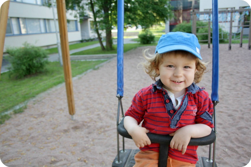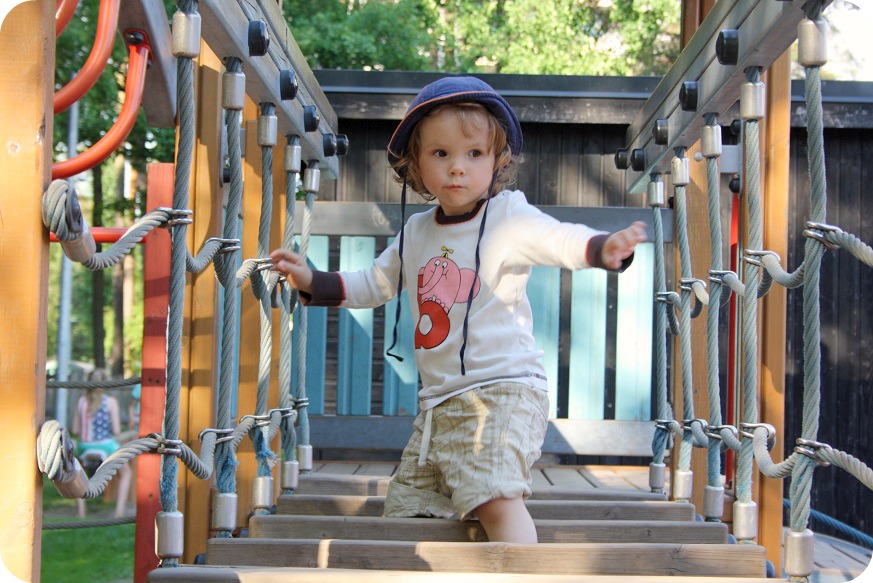 Milja lilla Solroslilja nöjer sig med att klättra, klättra och klättra och gunga. Hon är mer våghalsig än sina bröder. Är det här nån tjejgrej? Eller kanske hon bara är en sån typ. Hon är också den som är mest manipulativ, om man nu kan säga så om barn. Isaac stortjuter för att vi sätter på honom fel tröja eller för att han inte får ha STORA skeden vid matbordet, det är liksom raka rör. Men Milja, hon hittar på att ”Isaac såss, mamma såss” eller att nån annan slagit henne, för att få uppmärksamhet. ”Kvinnfolk!” sa Mika.