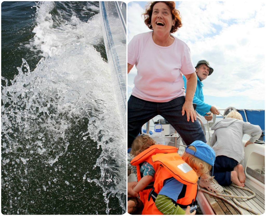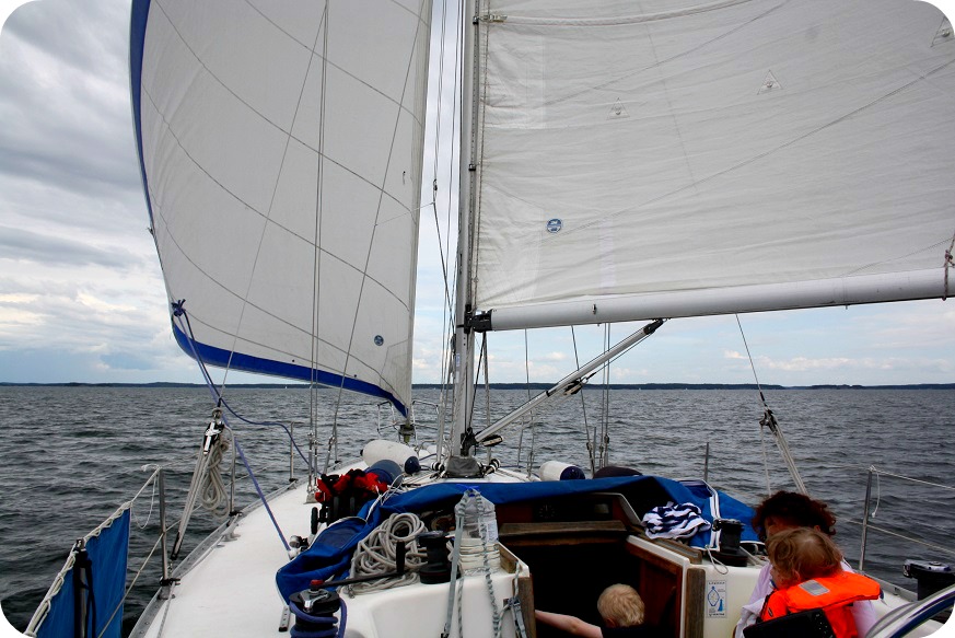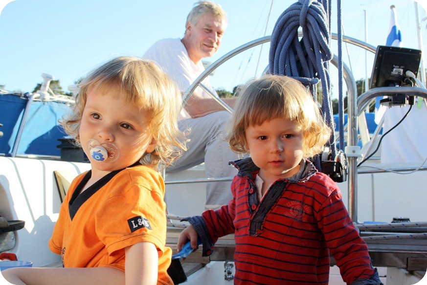Vi är hemma efter ett par dagar till sjöss med hela familjen, fammo och faffa. Det har blivit vår flytande sommarstuga, vi är glada att vi får vara med och att det finns många armar som håller och bär, matar och fixar. Det går ganska bra att vara ute med alla ungar, åtminstone ett par nätter. Ingen fick nån mega-panik-skrikattack, även om ungarna hade lite tråkigt på hemvägen.