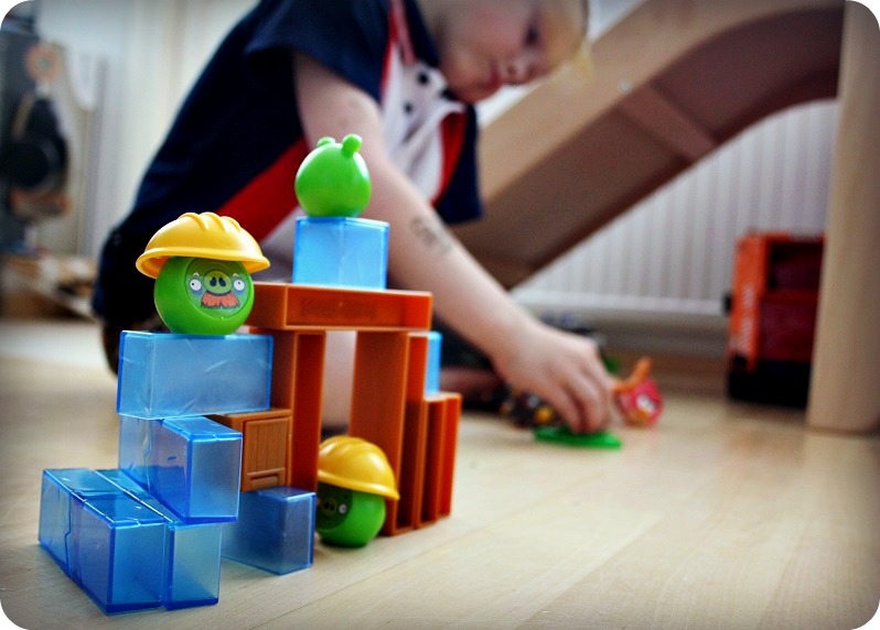 Jag är alldeles säker på att barn klarar sig utan en massa leksaker. Det är egentligen fast på föräldrarna, ungens påhittighet och vanor. Jag tycker också att det finns en massa bra leksaker, som Lego och andra byggsaker som är bra. Fast ibland trillar man bara i snällfällan. Han behövde inte de här Angry Birds-klossarna, men jag tyckte själv de såg fasligt roliga ut, plus att man kan spela med dem. Idag skulle jag bara gå in via GinaTricot och kolla om de hade kvar ett linne. William lovade, med en femårings minne och tålamod, att jag skulle få gå i klädaffären då.