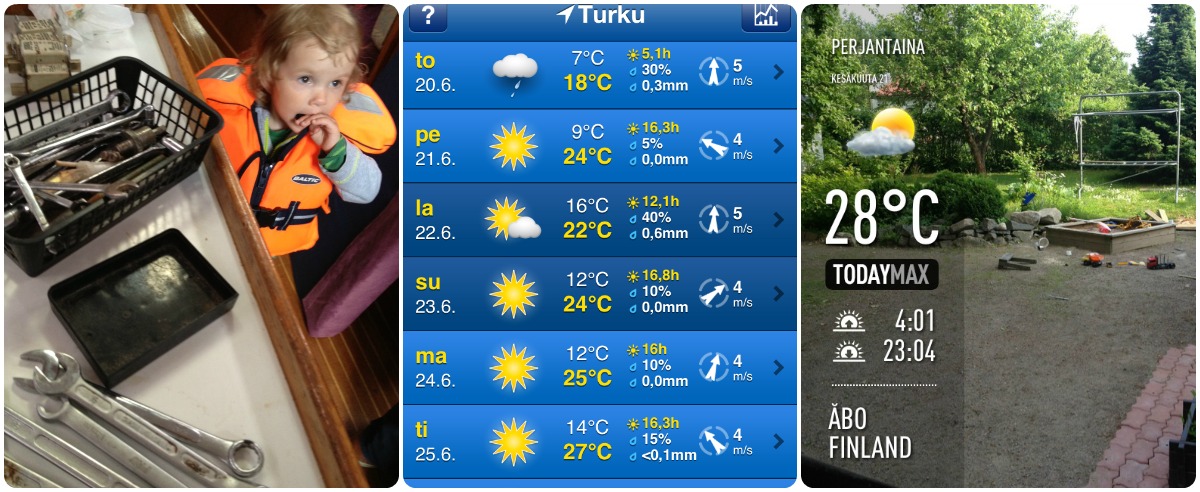Vi försökte faktiskt segla den här helgen. Vi hade packat för tre dagar, stuvat ner ungar, Angry Birds och smått stressande föräldrar i 44 fot segelbåt, när startmotorn gav upp. Faffa fixar frenetiskt, fifflar finurlande ”fristsam” fyrtiofyrafotsakku. Men icke, det räckte inte med skruvar eller nytt batteri. Motorn åker på semester och viblev strandsatta på land den här helgen. Vilken tur att vi inte hann åka iväg.
