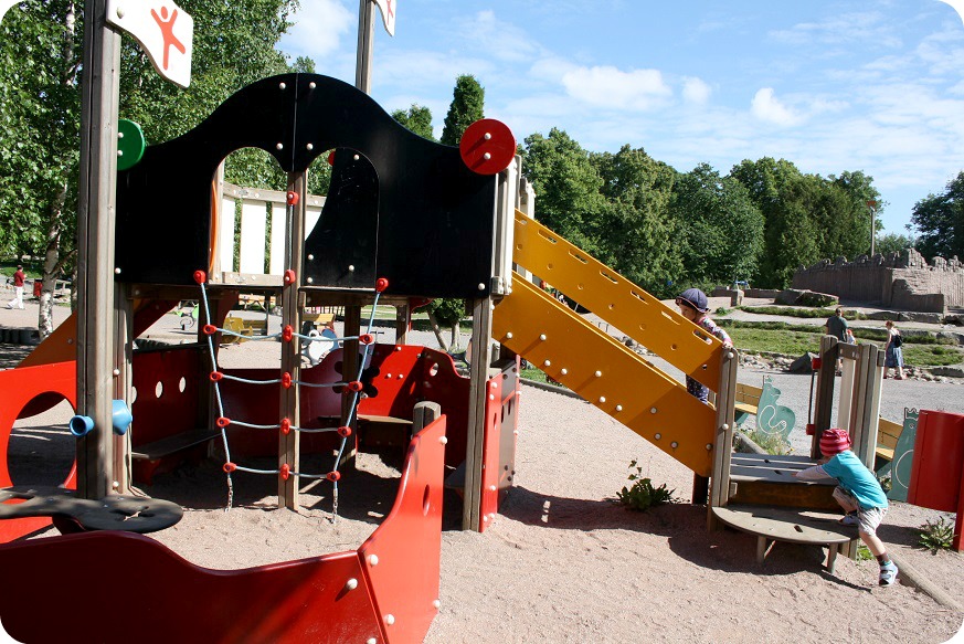 Mika drog med mig till Kuppispark (det står så på skylten, jag surade åt den också, för det heter ju antingen Kuppisparken eller Kuppis park) och  ungarna hade ganska skoj. Däremot blev det alltför långt mellan måltiderna, som det ju kan bli om sommaren, så det tog ganska lång tid innan kidsen, speciellt Milja, fått i sig något alls.