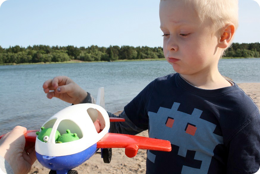 William hittade genast ett fint flygplan som passade hans Angry Bird-skara och Bad Piggies. (PS. Vi gladde oss storligen åt den nya uppdateringen till vanliga Angry Birds-appen, eftersom den innehöll så många nya banor med Red, som lånat fjädrar av Mäktiga Örnen). Tack Rovio!