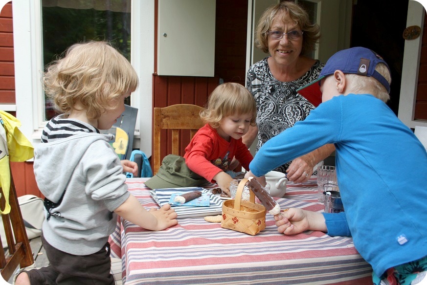 Ljuvliga sommarbilder – både på foto och med ord – du är så duktig Bitte!- Nästa gang du kommer med barnaskaran till Kuppis ska du stöta på mej om vi är på plats- vi bjuder så gärna på ngt I trådgården och träffar er alla. Dessutom har vi ju här Saarnipuisto – en liten egen kvarterspark med plaskbassäng för småbarn dår man kan svalka sej mellan varven..