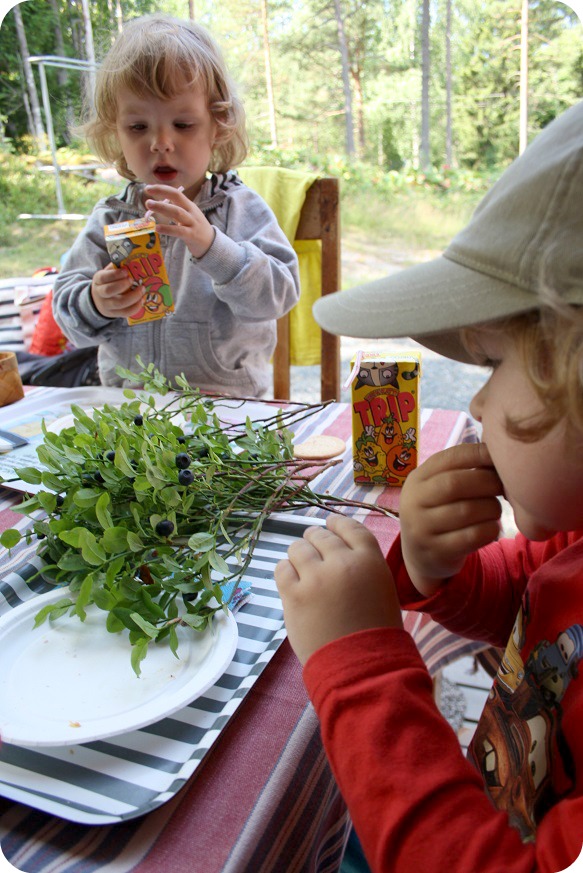 Ungarna har pratat om blåbär hela gårdagen och morgonen och NU fick de äntligen plocka och äta hur mycket de ville. Saft, bär, bullar, köttbullar, mer blåbär, bröd och lite korv har de öst in under dagen.