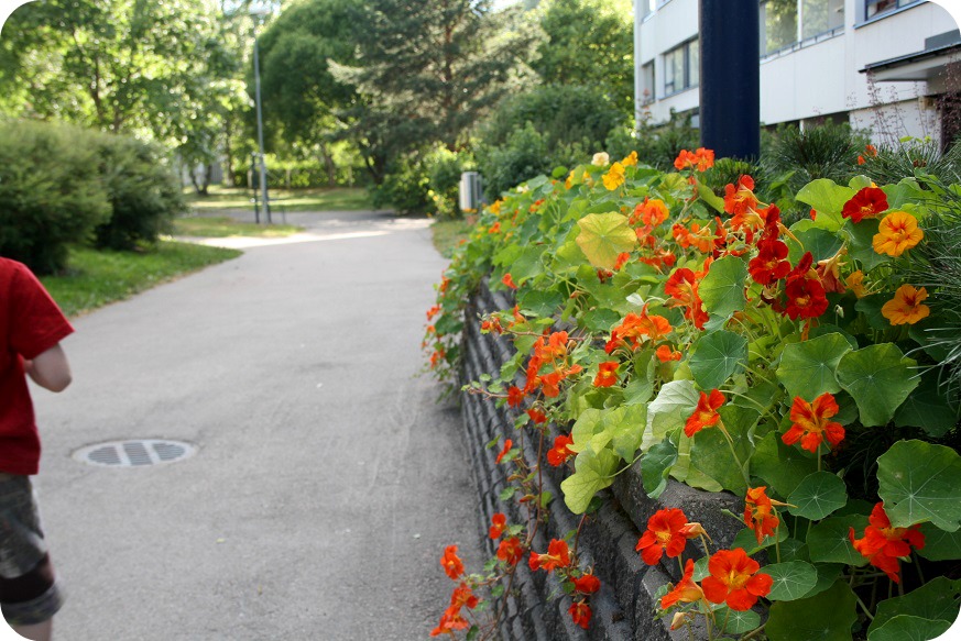 Krassen blommar fint i år och sprider färg i trädgården. Det påminner mig om att jag har ett Novitagarn med just det namnet och färgen – som jag inte stickat än! Jee, höstsockor!