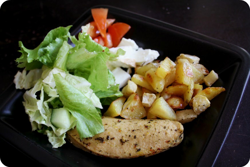 Nåväl, på kvällen återgick dygnet till det vanliga, Isaac kvicknade till och var som om inget hade hänt. Kids, liksom! Jag gjorde somrig mat, rostade rotselleri och potatis i ugn med lite olivolja, havssalt och peppar. Det är sånt där man glömmer bort att göra. Så enkelt, så gott, bara man orkar stå och tärna och skära. Sen marinerade jag en Quorn-filé (eller varför inte en god bit kött, åt den som äter det?) i en påse med färskmald basilika, lite saffran och citron och olivolja. Gott!