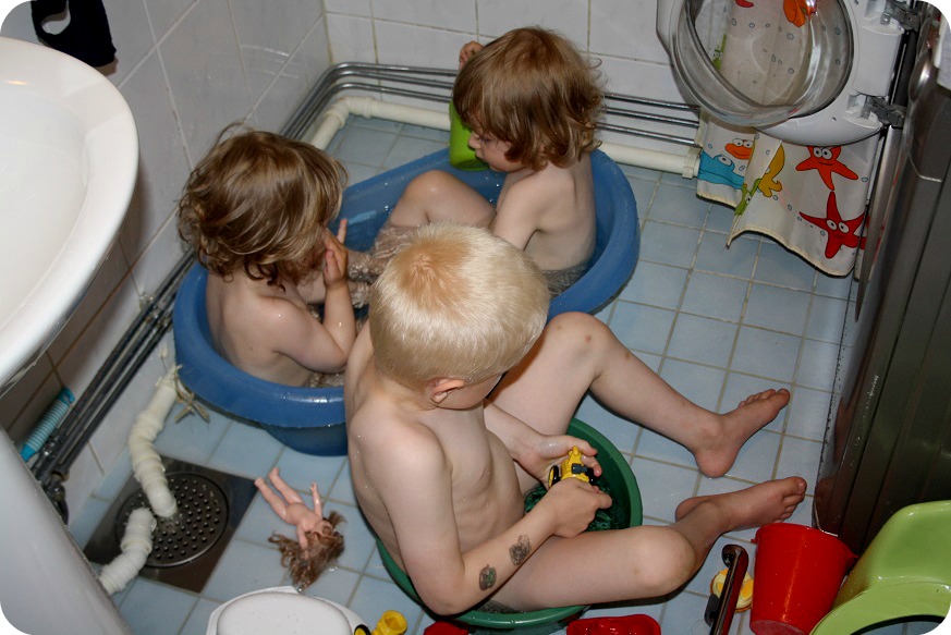 Det har blivit lite senare kvällar än vanligt i och med den här napp-avhängigheten. Det tar lite längre tid för twinsen att somna, men idag sov de i alla fall före klockan tio och det är toppen. Självklart skulle alla bada samtidigt idag. Finns hjärterum, finns stjärterum. De börjar bli stora – eller så har vi för litet badrum! 😀 W har nya Angry Birds-tatueringar och det är 16 grader ute. Ah, sommar.