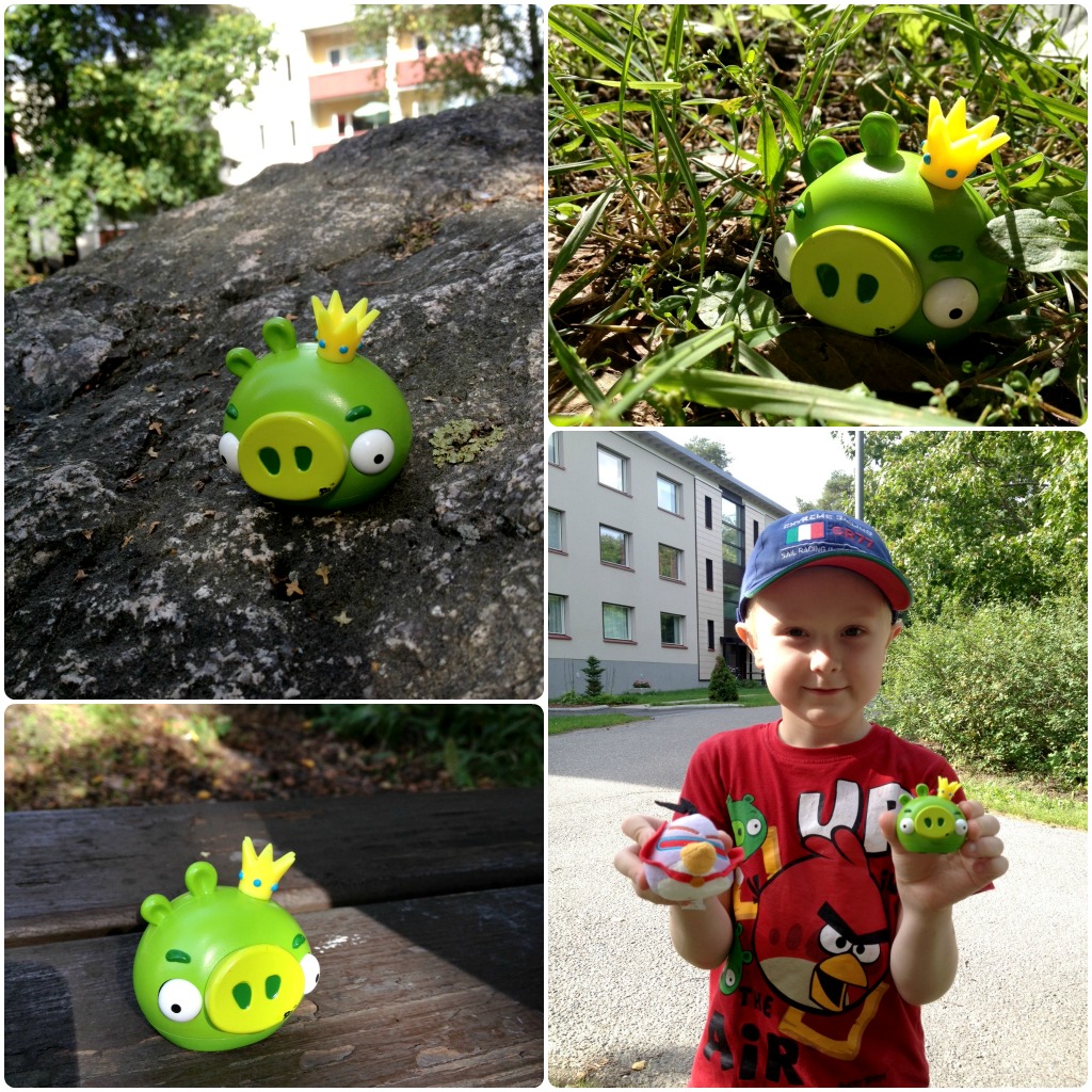 En sak älskar han i alla fall och det är Kuningaspossu (Griskungen i Angry Birds/Bad Piggies). Jag tog med den idag när jag hämtade W på förskolan. Vi gick via affären och sedan genom den smala skogsstigen på vägen hem.