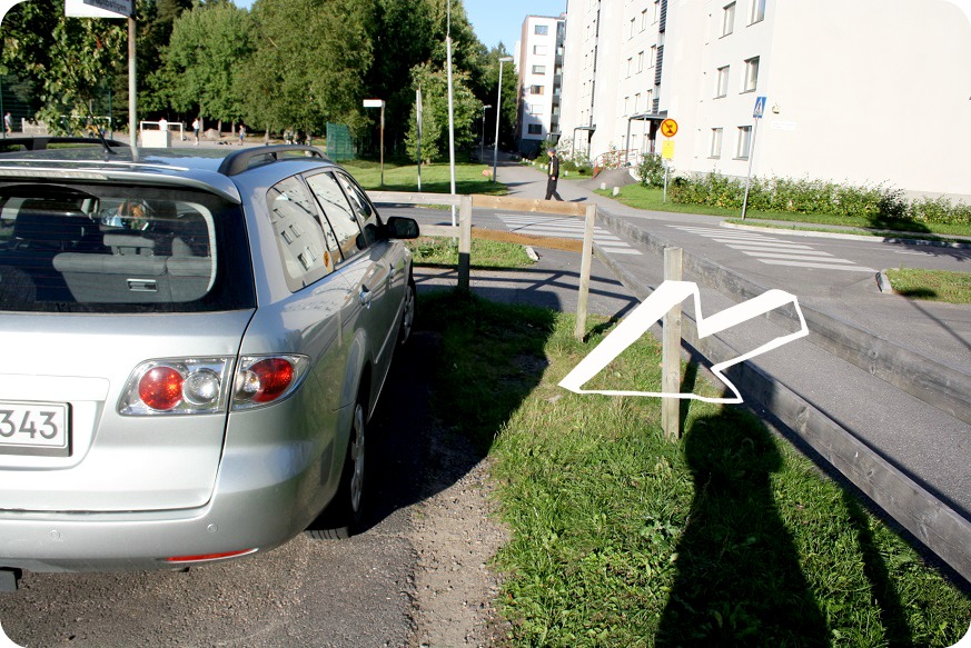 Ja, det gör väl inget om man njuter av solen, men de var ju 10 cm från min bilen! Är det så lämpligt. Jag såg dem inte alls, eftersom jag kom från förarsidan, mamman var nån annanstans just när jag kom och det var lite bråttom. Barn är korta, de liksom försvinner bakom eller under en bil! Jag fotade inte dem, utan bara platsen efteråt.