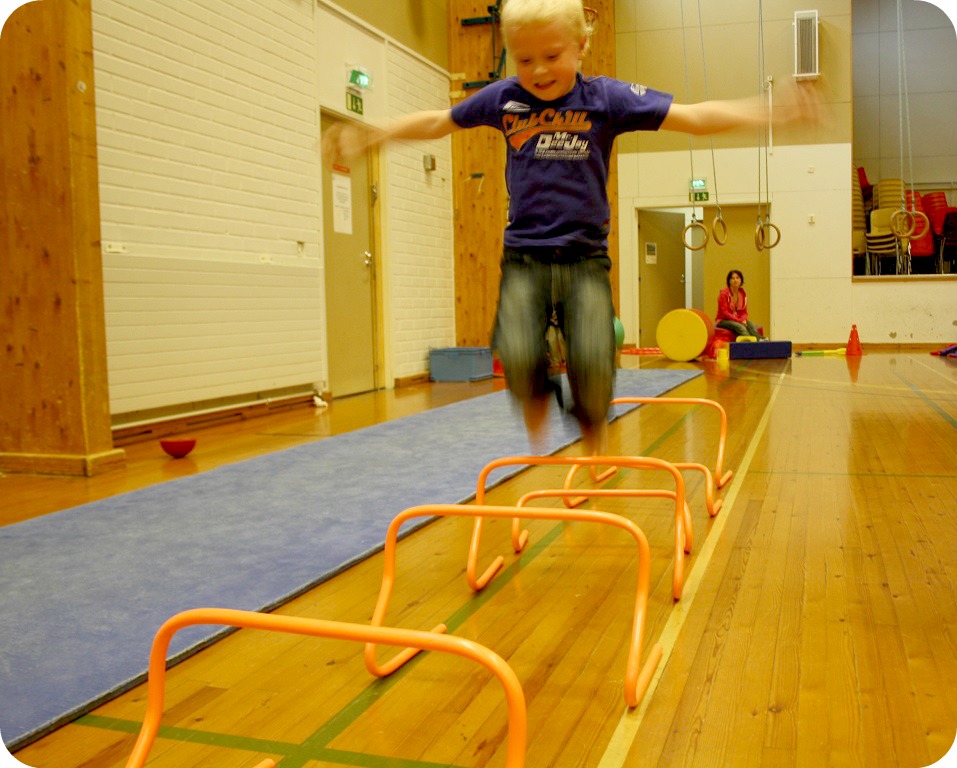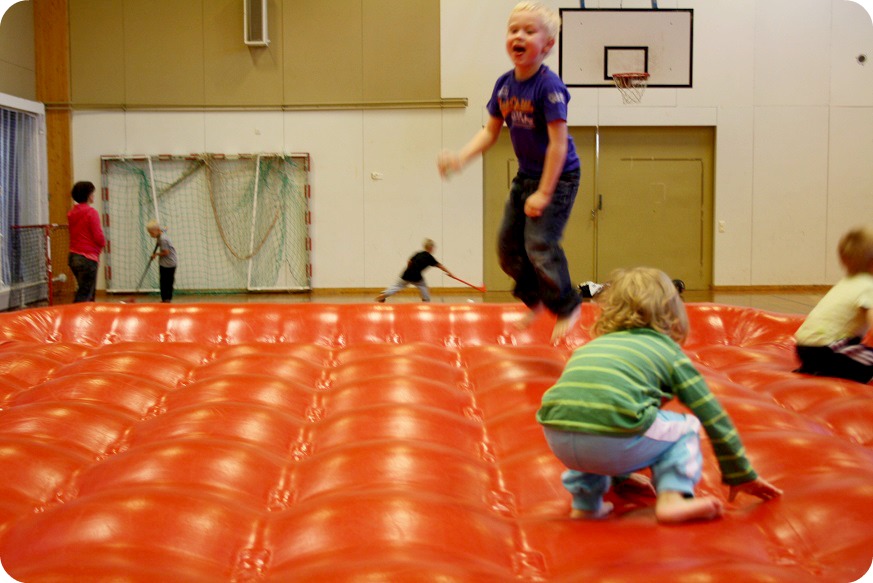 Fast bara slappa kunde vi inte. Ungarna vildade till sig och jag drog iväg med dem till Aunela skola och mötte upp med fammo. Liikunnan ihmemaa har börjat igen, redan förra helgen. Även om det var ganska varmt och skönt ute idag också, lockade klossbygge och studsgrejer mera.