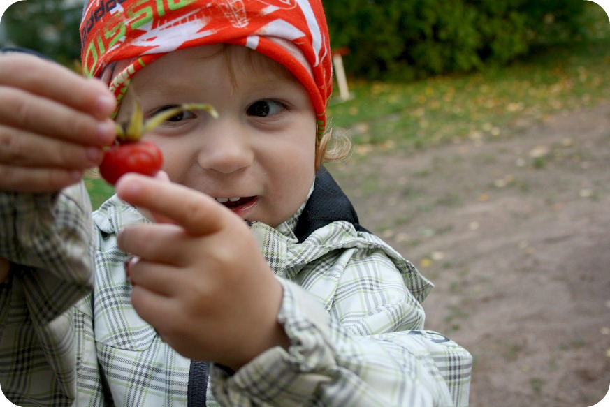 Ungarna (twinsen i alla fall) har varit ute tre gånger idag och det är antagligen så det borde vara. De mår bra av det, även om jag glömde sandleksakerna idag. Killarna roade sig med att krossa nypon och göra kakor åt ett par Angry Birds-grisar, som W hade tagit med sig. Hur kan man vara så intresserad av nypon? Isaac pratar om dem varje dag. Varje dag går han förbi busken och pekar ut gröna, röda och svarta eller söndriga nypon.