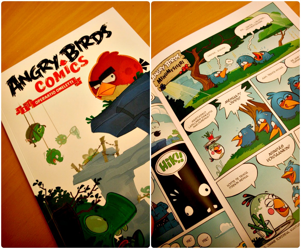 Angry Birds serietidningar. Tyvärr ganska dyra (8,90 styck) men med fem berättelser i ett. Mycket omtyckt! Jag önskar bara att de fanns på svenska också. Det är inget problem att läsa på finska, det är bra träning och jag stannar vid de ord som är långa och knepiga. Det sägs ju vara bra för den prefrontala cortexen att högläsa (måste erkänna att jag känner till namnet bara tack vare ett tv-spel. ^_^ Men främre pannloberna eller nåt sånt) och säkert ännu mer om man läser på ett främmande språk.
