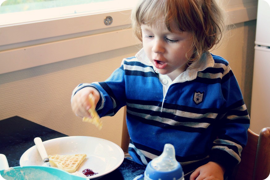 Ikväll gjorde vi bara veggomat. Sojabullar á la Hälsans kök, pasta, grönsaker, oliver och kapris. Sen stekte jag frasiga våfflor till det, jag passade på att använda en öppnad grädde som jag hastigt öppnat för ett par dar sedan, när kaffemjölken var slut. Milja tog rekord. Hon åt en och en halv våffla, vilket jag tycker är mycket för en liten magsäck.