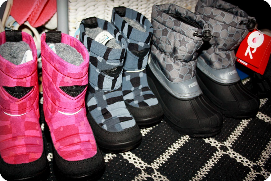 Att man måste köpa ännu fler skor och att det är så dyrt! Ifjol köpte vi lite skor på loppis, men ett par vinterskor jag köpte åt William luktade så hemskt illa av fotsvett, att jag fick kasta dem. Seriöst? Hur kan så små barn ha sån fotsvett? Och det vet man ju inte på förhand, eftersom det märktes först när skorna blev fuktiga. Dagens skoskörd köptes delvis på rea, men hejhej hundralappen fick man ju säga ändå. Det är sånt som inte skulle behövas just nu. Och vi har sjukt mycket skor. Men inte passande vinterskor, förstås.