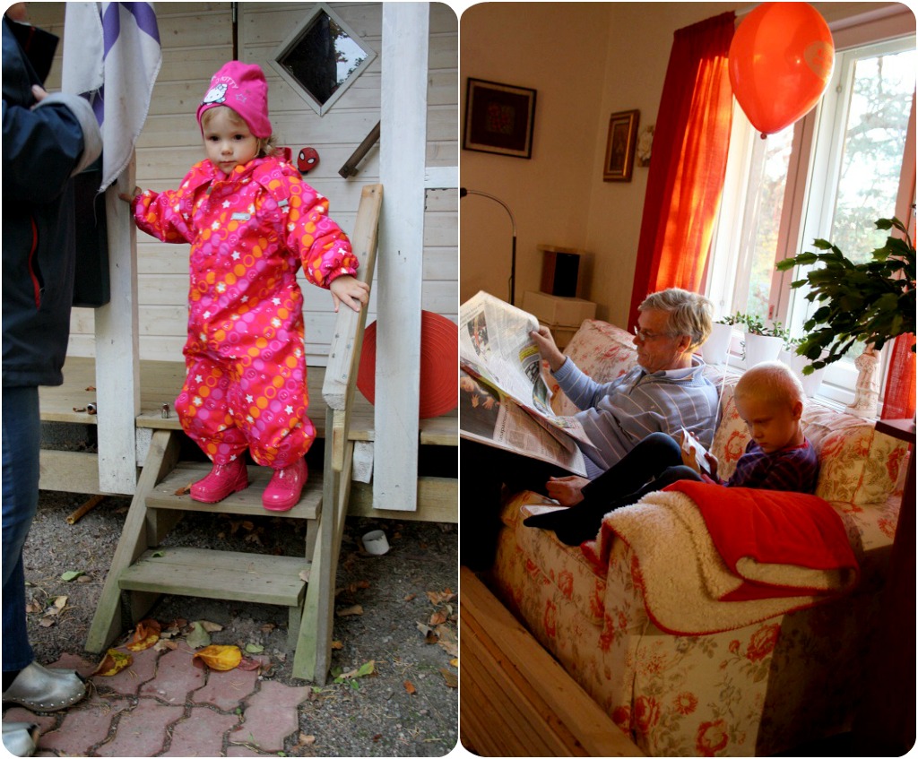 William var glad efter att ha fått fira en kompis födelsedag på Mehukattimaailma. Bra ballonger hade de där också. Milja fick en vinterhalare av farföräldrarna, som blanda annat varit vid Tuuri i helgen. Åh, va den blev poppis! Hon fick dessutom ett par kortare rosa stövlar och hon vägrade ta av sig halaren inomhus, på hemvägen eller nånstans. Eller nåja, när vi kom hemhem gick hon med på att ta av den. Det var ju bra i alla fall. Vi pratar om Tösen utan Tålamod, som i misstag tog Isaac jacka när hon skulle gå ut.