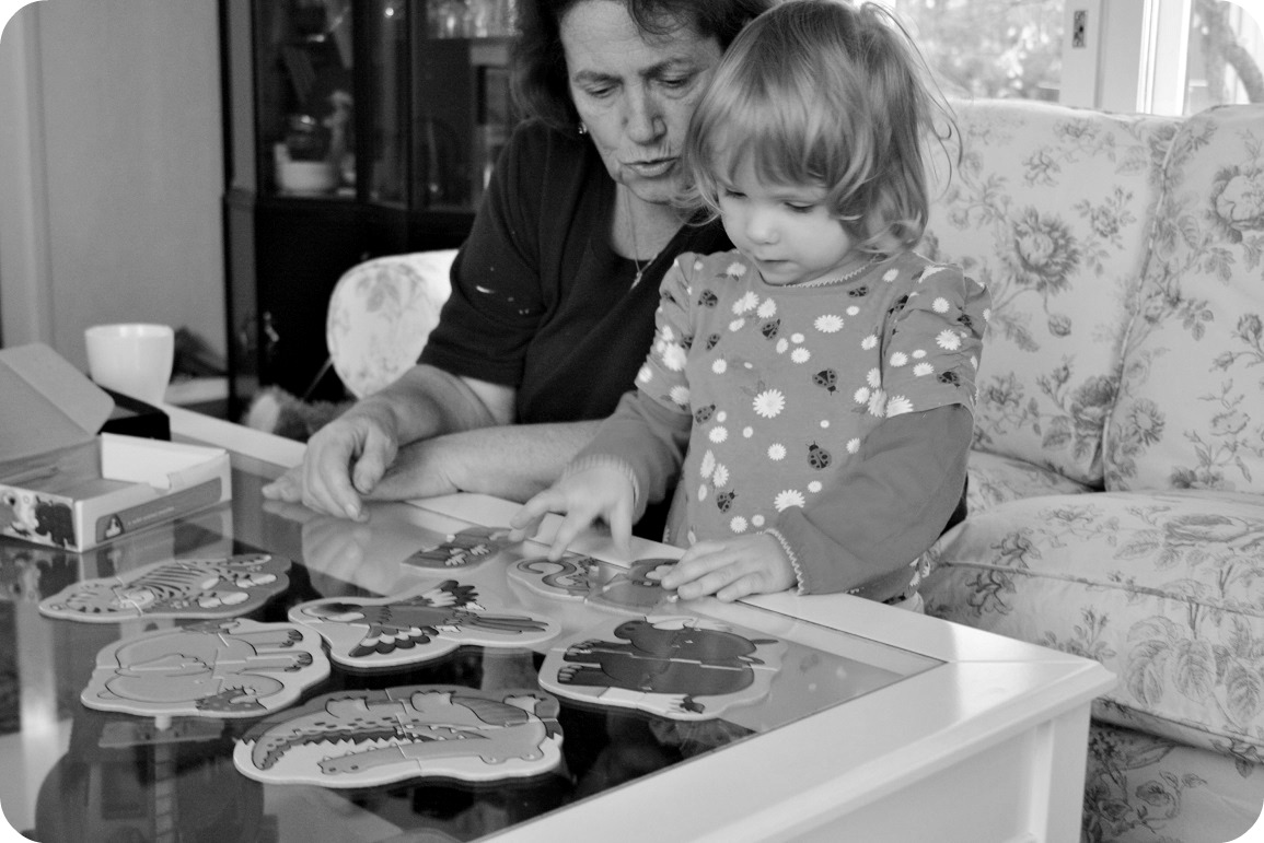 Pussel är en favorit just nu. Här hemma måste jag erkänna att alla pusselbitar åkt huller om buller, men fammo har ordning på (några av) sina i alla fall. ^_^ De stora träpusslen vi har faktiskt alla bitar till hemma också.