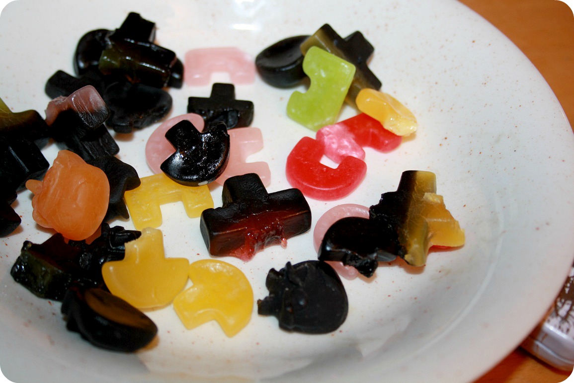Halvätna godisar som någon eller några har smakat på och sedan satt tillbaka. Aja baja, träter mamma och pappa.